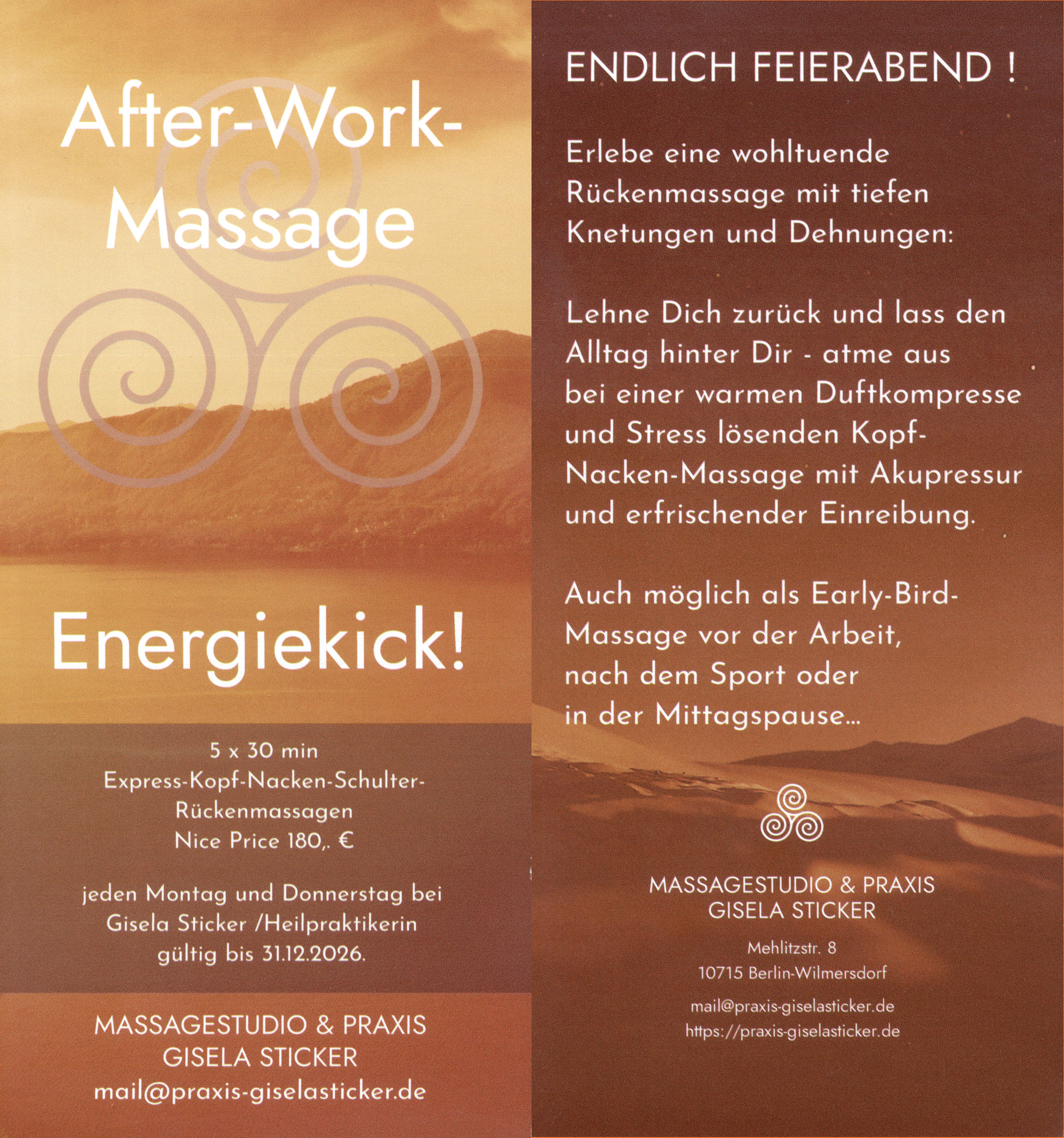 | Vitalisierende Sportmassage | 30 min | 35,- € |